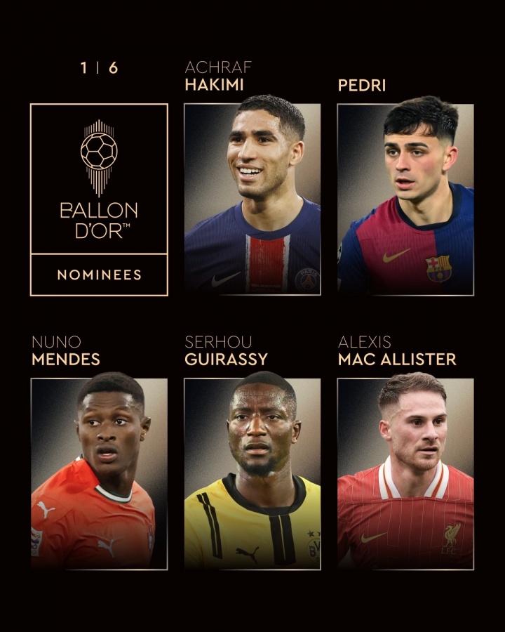 24 Live Network 8月7日新聞金球獎(jiǎng)?wù)叫剂?025年男子金球獎(jiǎng)的30人入圍名單。登貝勒(Dembele)帶領(lǐng)巴黎的9名球員入圍,雅馬爾(Yamal),拉菲尼亞(Rafinia)和姆巴佩(Mbappe)被列出。